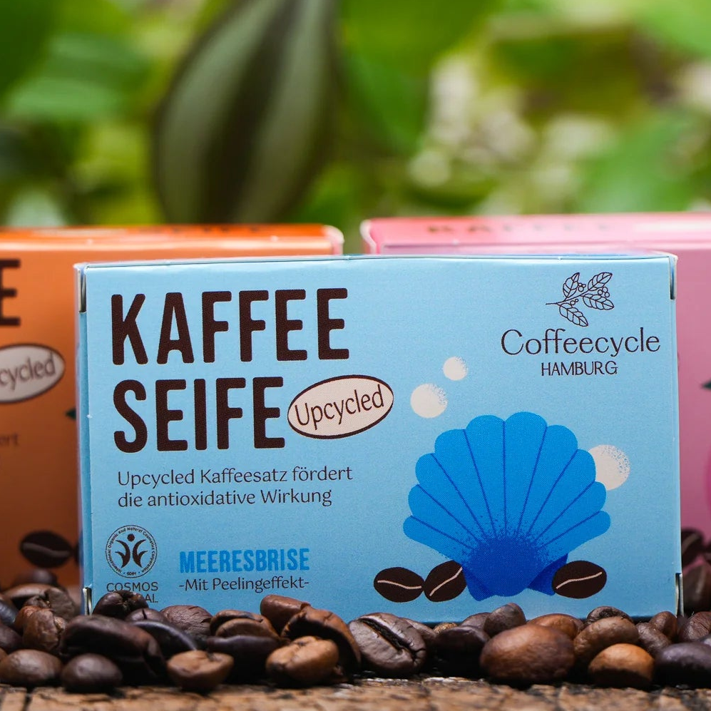 Kaffee zählt zu den beliebtesten Getränken in Deutschland, entsprechend viel Kaffeesatz fällt jährlich an: mehrere Millionen Tonnen, von denen der größte Teil weggeworfen wird. Viel zu schade, dachten wir von Coffeecycle uns auch, da wir als Barista jeden Tag mehrere Kilos des wertvollen Rohstoffs entsorgen mussten. Denn Kaffeesatz lässt sich nicht nur für verschiedenste Zwecke in Haus und Garten verwenden, etwa als nährstoffreicher Dünger, als Geruchsentferner oder Scheuermittel, sondern ist dank des enthaltenen Koffeins (6 mg/g) auch wirksamer Zusatz in Natukosmetik. Das Kaffeemehl selbst ist ideal für umweltfreundliches Peeling. So entstand die Idee, den kostbaren Abfall zu recyceln und in Kosmetikprodukten zu verarbeiten. Den Kaffeesatz bezieht Coffeecycle aus Hamburger Cafés, Hotels und weiteren lokalen Partnern.