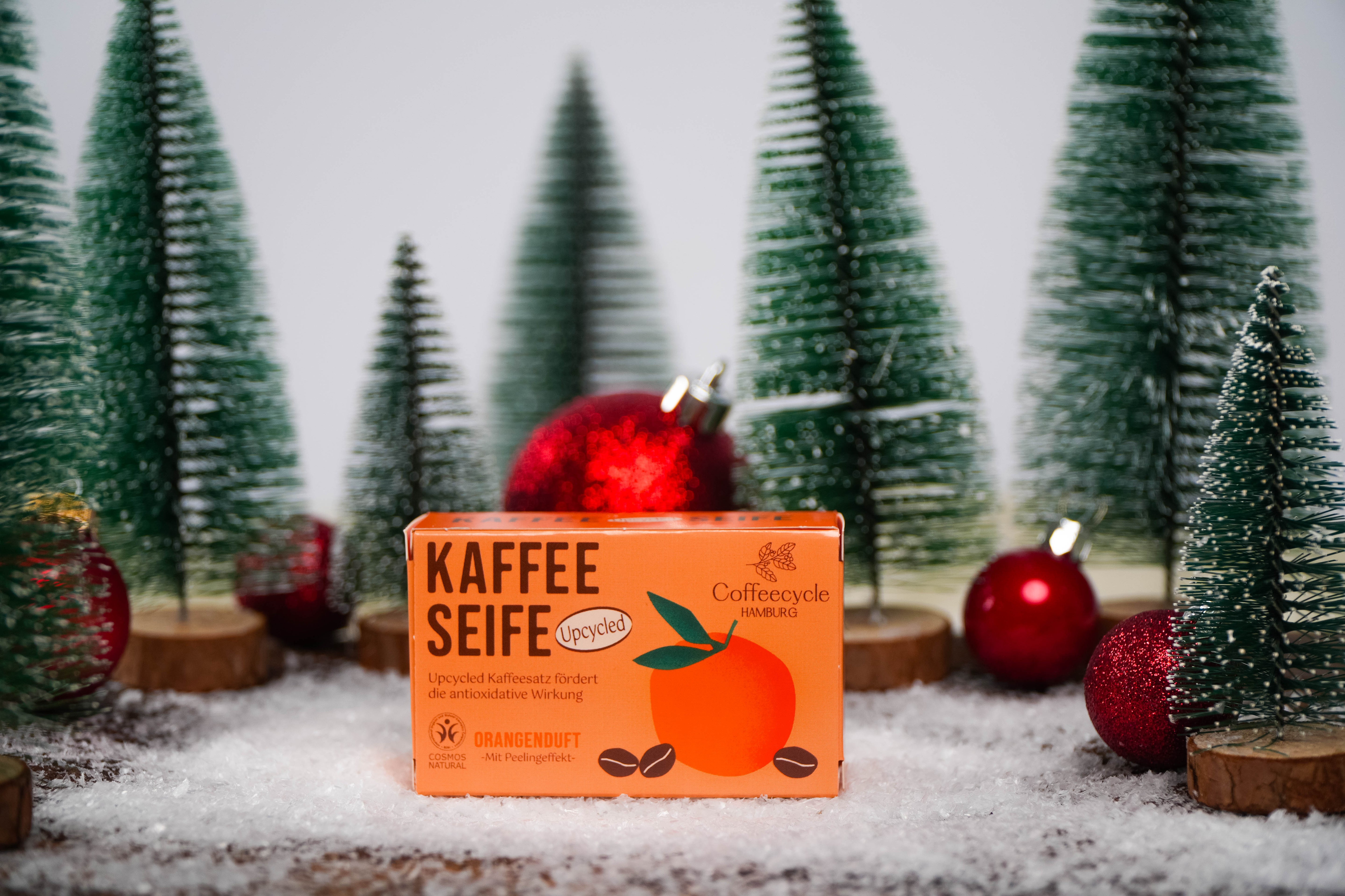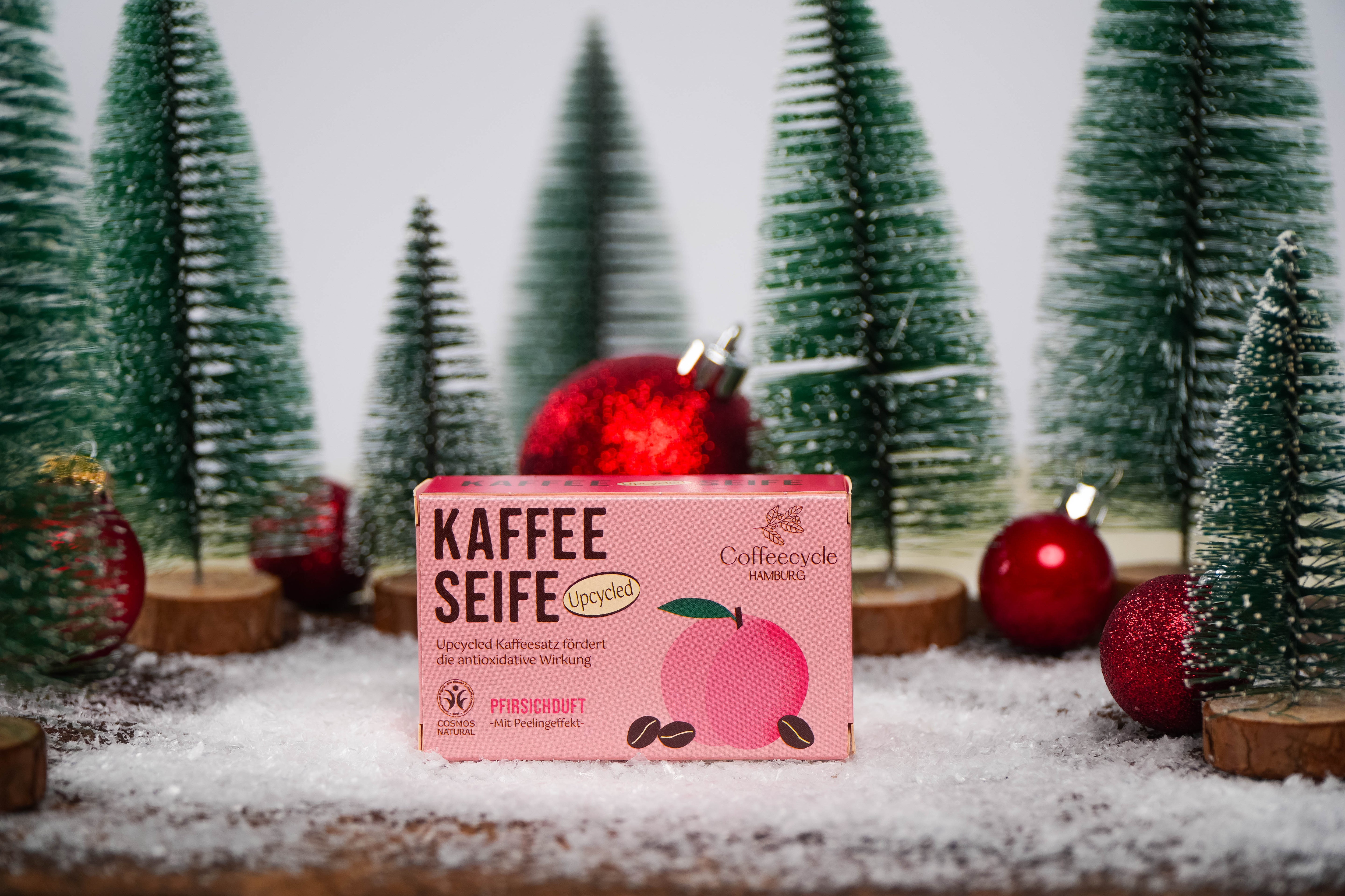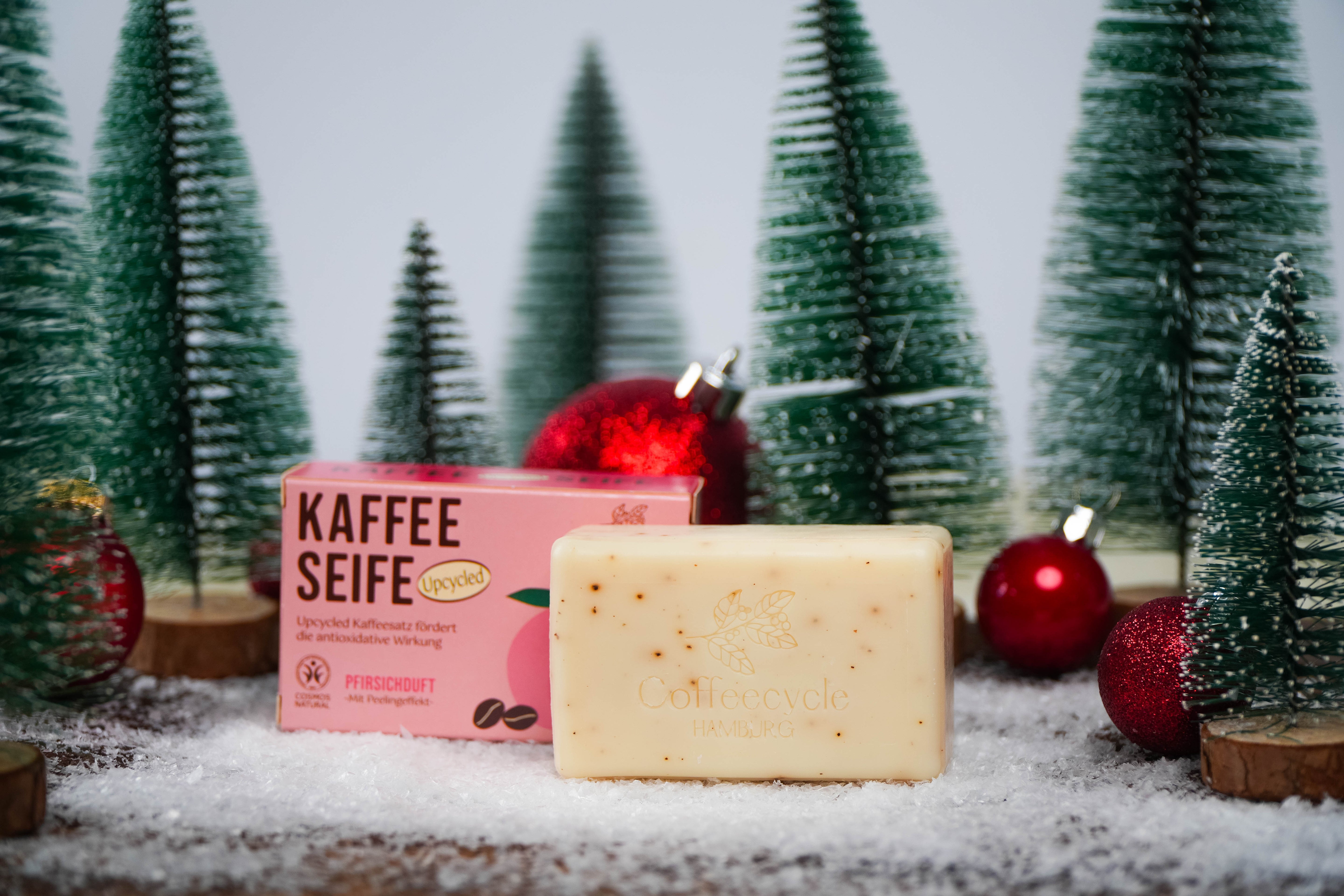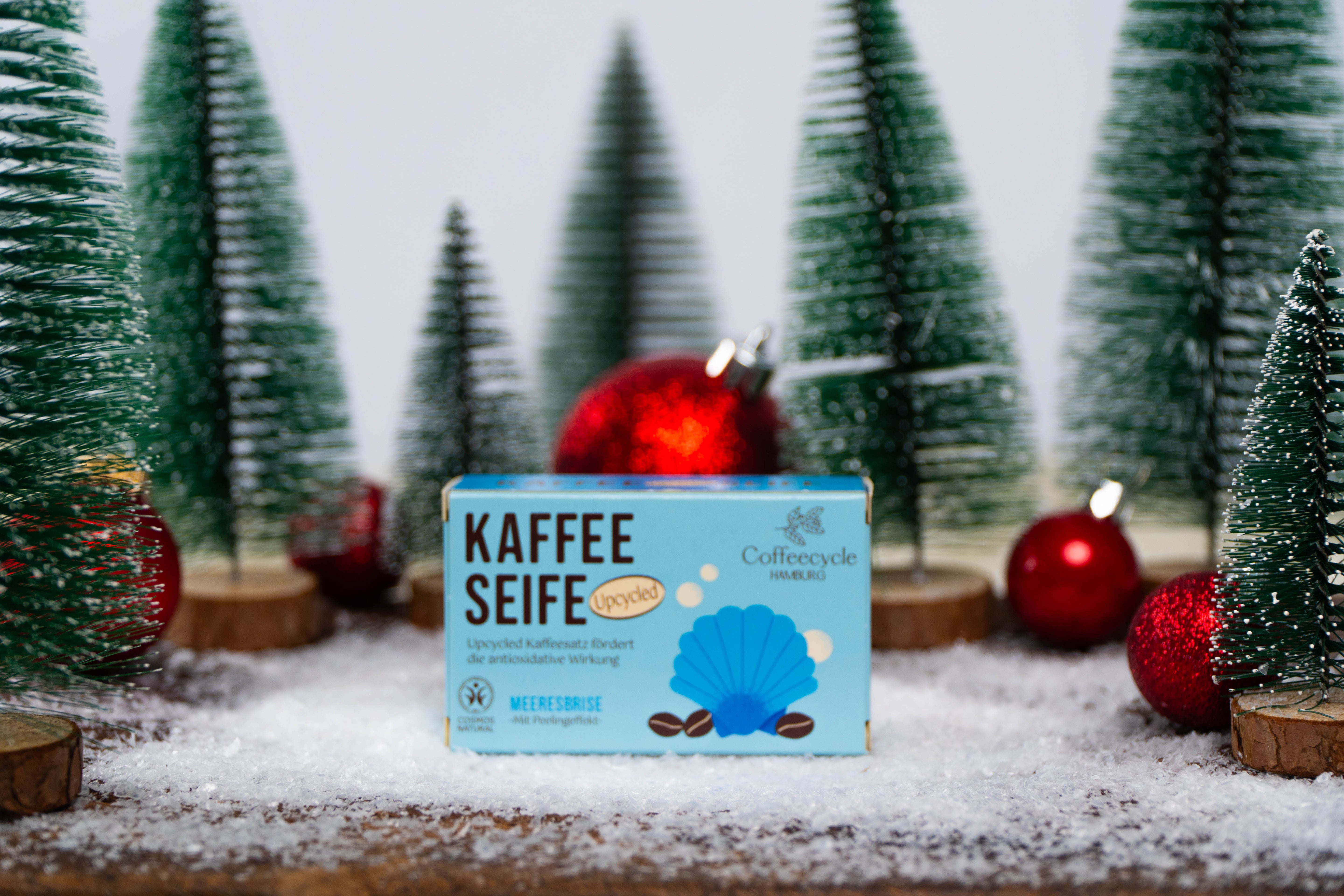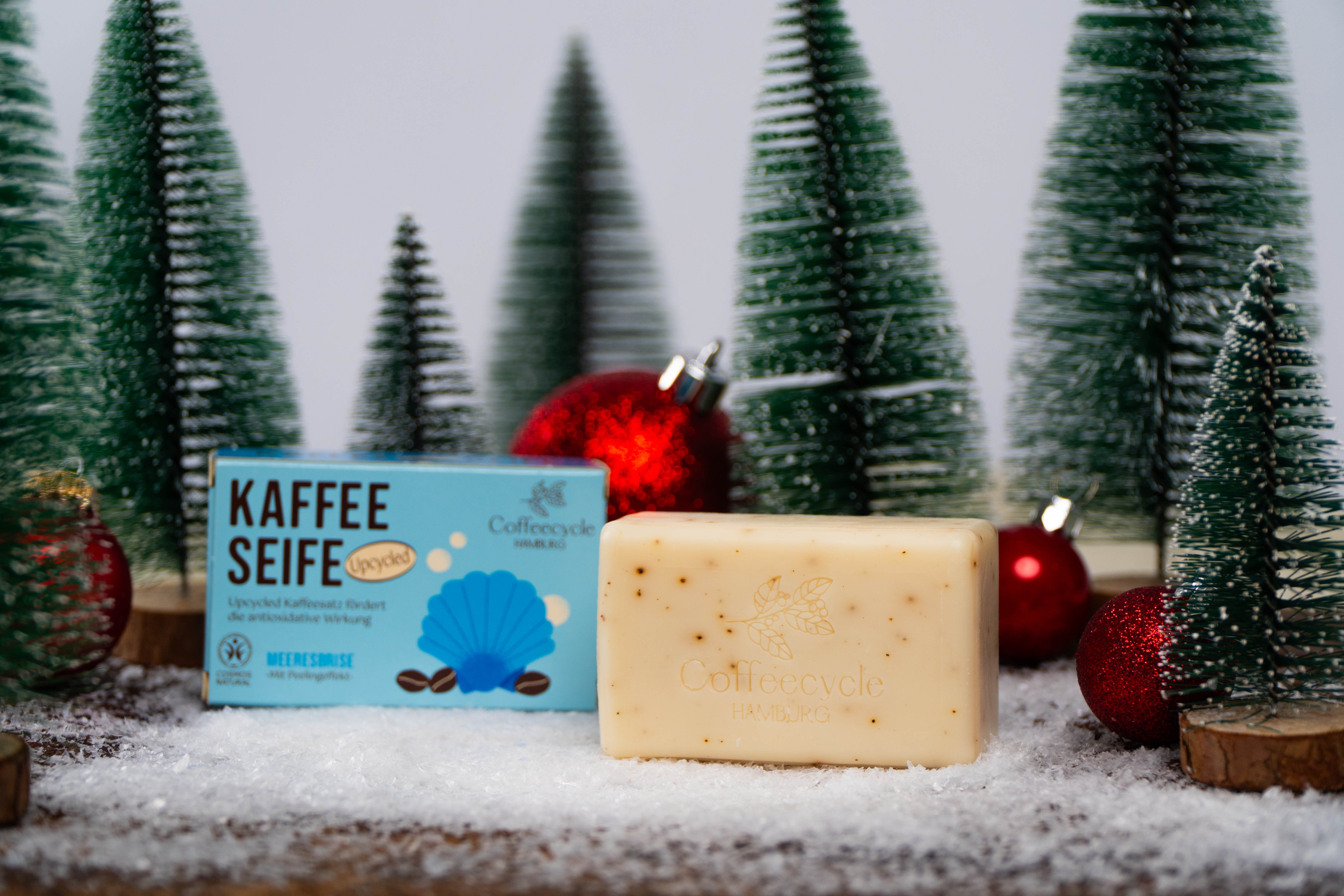 Das Geschenkset von Coffeecycle vereint nachhaltige Körperpflege mit frischem Duft. Enthalten sind die Deocreme Meeresbrise sowie vier Kaffeeseifen in den Sorten Orange, Pfirsich, Meeresbrise und Vanille-Muskat. Alle mit recyceltem Kaffeesatz und natürlichen Ölen. Die Deocreme pflegt sanft, wirkt zuverlässig gegen Gerüche und ist frei von Aluminium, Palmöl und Alkohol. Die Seifen reinigen schonend und pflegen die Haut mit Oliven- und Kokosöl. Weihnachtsspecial: Eine 150 g Seife im Wert von 15 Euro im Orangenduft oder Pfirsichduft ist gratis enthalten.