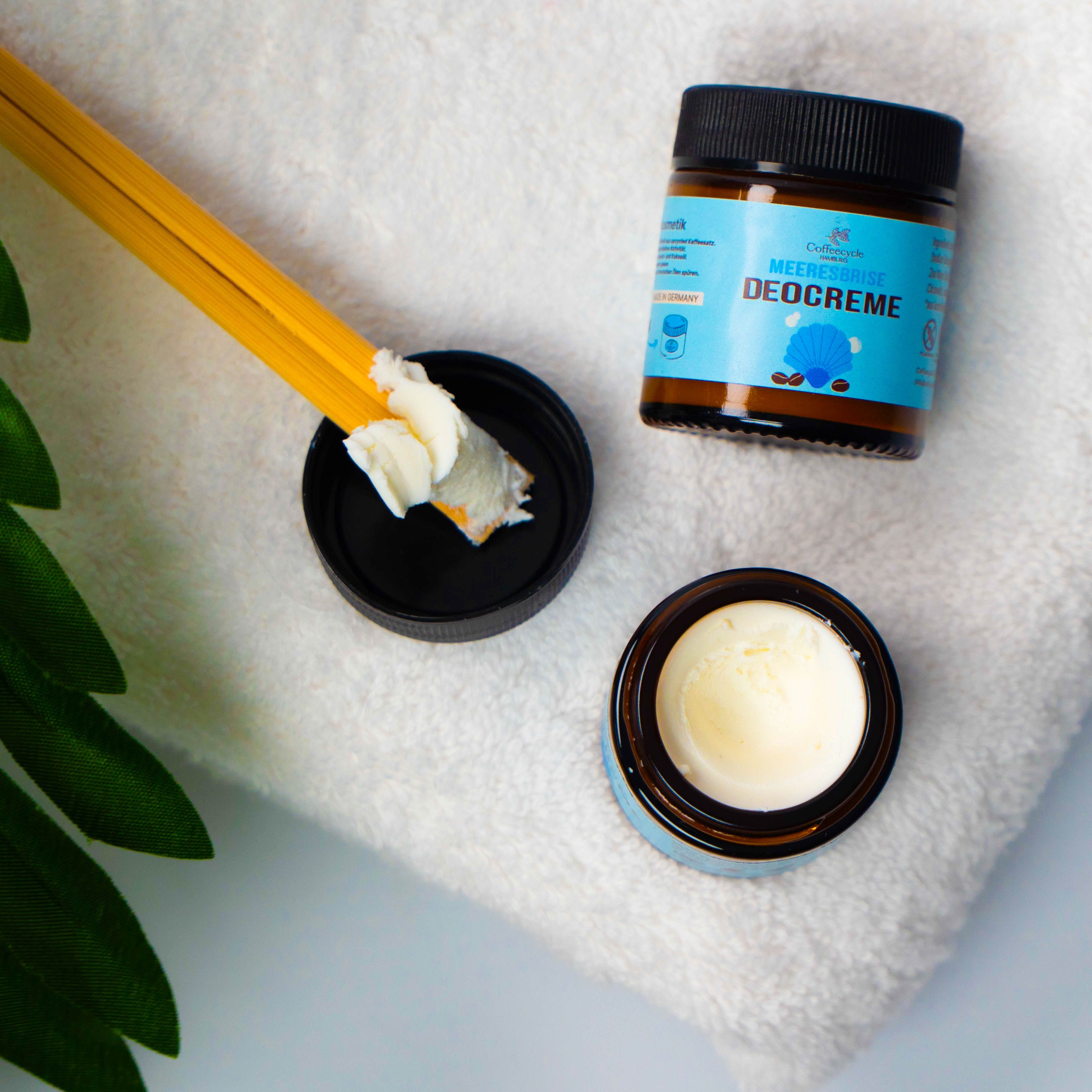 Eine erbsengroße Menge der Coffeecycle Deocreme unter die frisch gewaschenen Achseln auftragen und gleichmäßig verreiben. Für anhaltenden Schutz über den gesamten Tag hinweg. Die Deocreme sollte kühl gelagert werden.